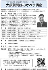 「大須賀鬨雄のオペラ講座」が今年度も開催されます。